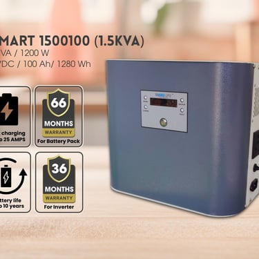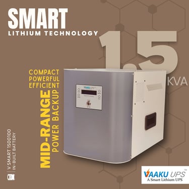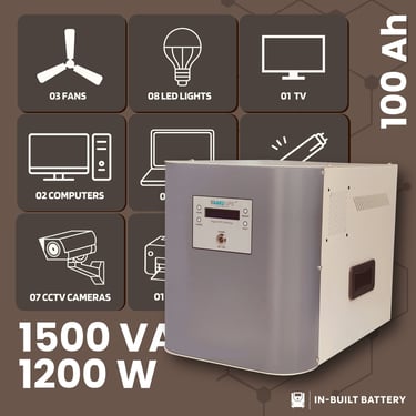 A compact and efficient versatile midrange power backup solution designed for both home and light professional use. With a 12.8V DC, 100Ah, 1280Wh lithium battery configuration, it delivers reliable backup for desktops, Wi-Fi routers, POS systems, and entertainment setups. Its space-saving design, fast recharge cycles, and near-zero maintenance ensure uninterrupted productivity and everyday convenience.